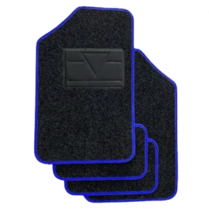 Set 4 Tappeti In Moquette Per Auto Tappetini Universali Bordo Blu Con Battitacco
