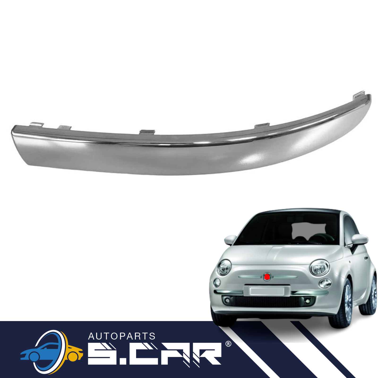 Modanatura Paraurti Per Fiat 500 2007-2016 Anteriore Sinistro Sx Cromato