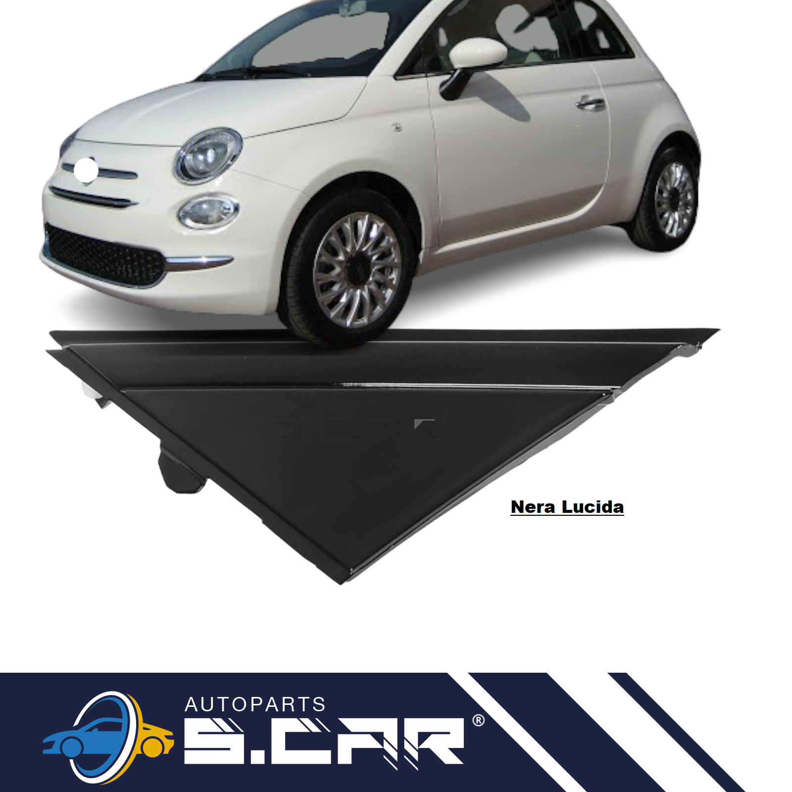 Mostrina Porta Modanatura Laterale Per 500 312 da 2007 Sinistra Sx Nera Lucida