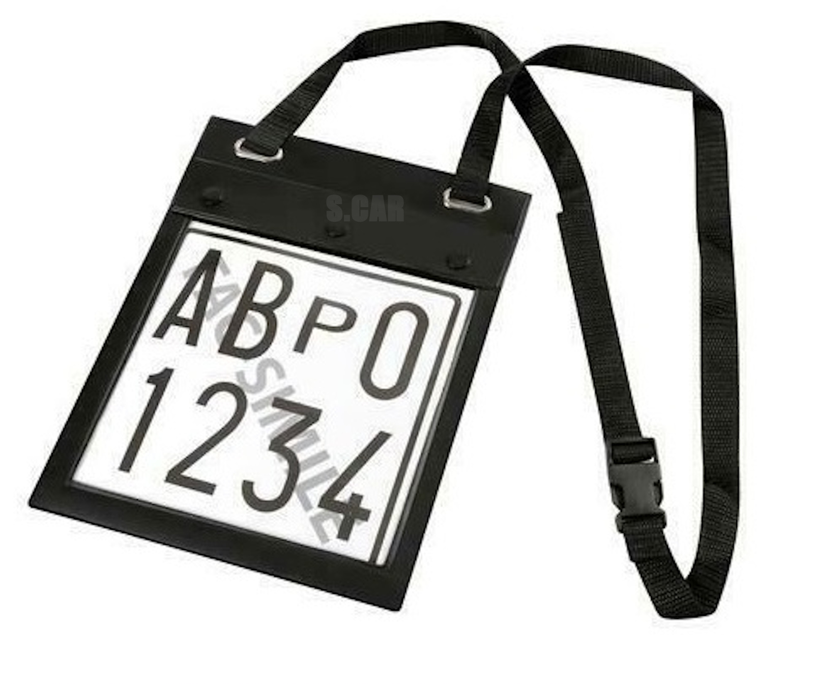 Porta targa prova a doppia tascaTasca portatarga.Tasca portadocumenti.Cinghia fissaggio con fibbia regolabile.
