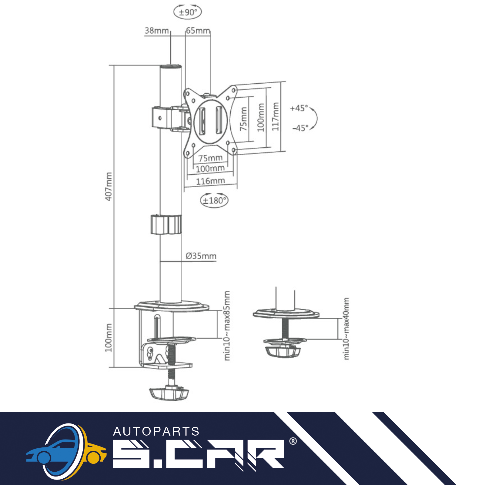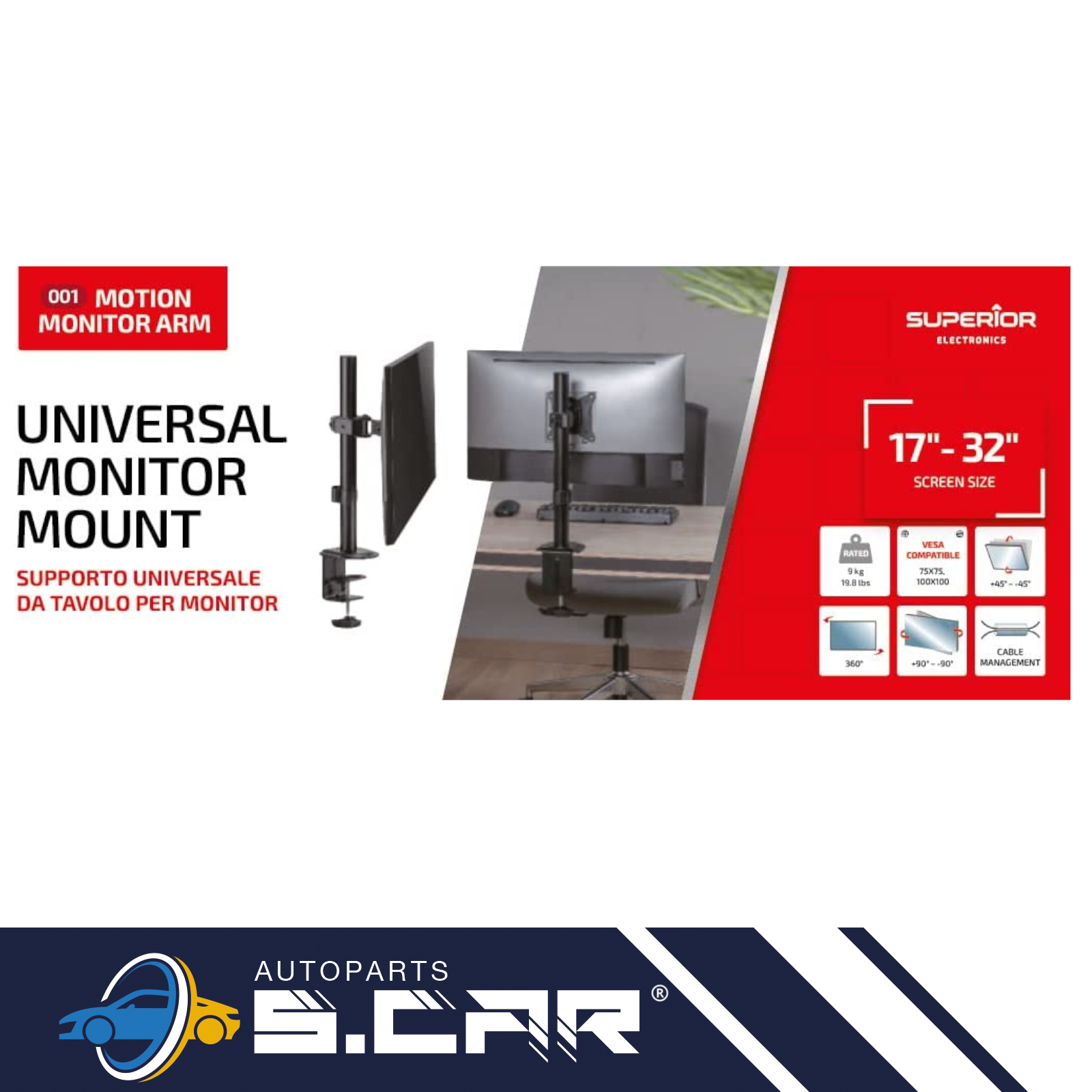 Supporto universale da tavolo per monitorLeggero e resistente per un carico fino a 9kg-19,8lbsDimensioni monitor 17″-32″VESA compatibile: 75×75, 100×100